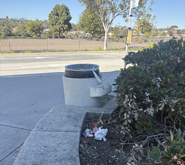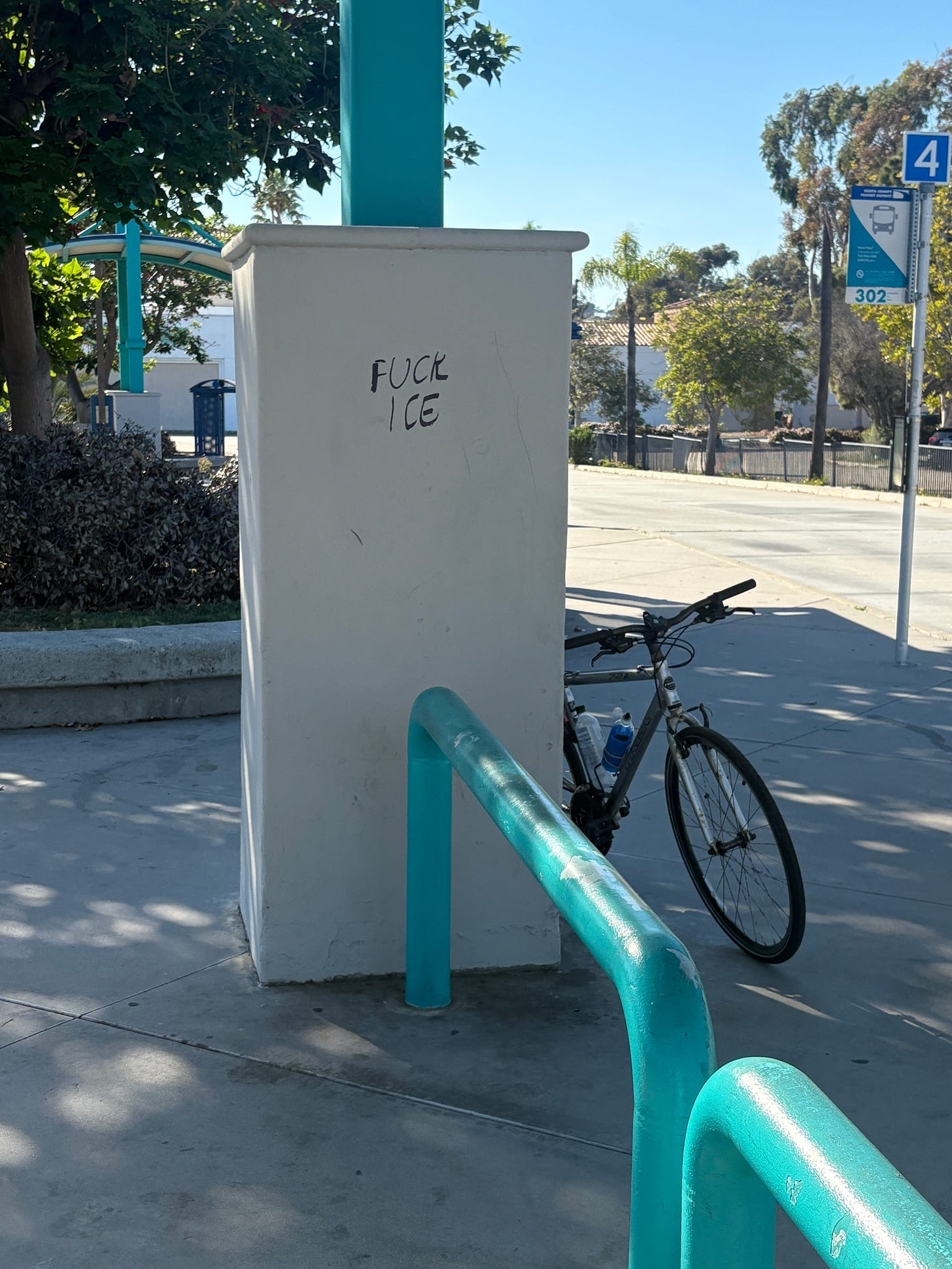 At the end of a twenty to thirty mile ride I take public transit home. Somebody was a criminal here at a transit terminal near a shopping mall.